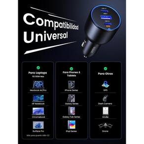 Carregamento rápido de 130w para 3 dispositivos cabo não incluído Carregador poderoso o carregador/de/isqueiro usb c de 130w com 3 portas é compatível com quase todos os dispositivos, de laptop a smartphone, gps e outros dispositivos. Usando este carregador de carro usb-c de alta potência, você pode transformar seu carro em um escritório móvel, tornando seu deslocamento mais eficiente e confortável. Carregamento rápido simultâneo as portas usb-c2, usb-c1 e usb-a suportam uma potência máxima de 100w, 30w e 22,5w, respectivamente, quando usadas sozinhas. As correntes máximas suportadas são 5a, 3a e 5a respectivamente, e a alta velocidade de carregamento não diminui ao conectar vários dispositivos simultaneamente, o que é ideal para uma viagem com amigos. Proteção de segurança o invólucro do carregador de carro é feito de material retardador de chamas, que pode obter isolamento térmico e proteção retardante de chamas. Este carregador de carro está equipado com um chip inteligente para proteger seus dispositivos contra superaquecimento, curto-circuito, sobretensão e sobrecorrente, garantindo um carregamento seguro. Luz led colorida: este carregador de carro foi projetado com uma luz led azul e branca brilhante, facilitando sua localização no escuro. Compacto e estável o carregador de isqueiro pode passar em 3.000 testes de plugue sem afrouxar, o que pode caber perfeitamente no carro. Tamanho: 77,35 35,5 24mm. Ampla compatibilidade este adaptador/de/isqueiro de 130w é adequado para quase todos os veículos de 12-24v, compatível com macbook/pro/air, /pro,//air/2022, steam/deck,//15/15/plus/15/pro/15/pro/max/14/14/pro/14/pro/max/se/2022/13/13/pro/se/2020/12/12/pro, galaxy/s24/ s24+/ s24 ultra/ s23/ s23+/ s23 ultra/ s22/ s22+/ s22 ultra/ s21 ultra/ s21 /s21+/note 20, etc. Nota: não suporta mi/turbo/charge. Requintado e portátil o tamanho compacto é quase tão pequeno quanto o seu polegar para que você possa carregá-lo para qualquer lugar. O invólucro robusto acelera a dissipação de calor para que você nunca sinta superaquecimento. Uma vez inserido na tomada/do/isqueiro, este carregador de isqueiro usb c não se move mais, sem preocupação com contatos falsos ou desconexões. É compatível com as séries//15/e/ Sim. Este carregador usb c é compatível com /15/15/plus/15/pro/15/pro/max/14/14/pro/14/pro/max/se 2022/ 13/ 13 pro/se/2020/12/12/pro/x/xr, /pro,//air/2022, etc. Quão poderoso é este carregador de carro usb-c Apenas porta usb-c2: 100w máx. Somente porta usb-c1: 30w máx. Apenas porta usb-a: 22,5w máx. Três portas simultaneamente: 130w máx. Quais são os outros designs especiais deste carregador/de/isqueiro de três portas Resistente ao calor: o design requintado garante uma dissipação de calor eficaz Tamanho pequeno: permite transportá-lo facilmente Luz led suave: ajuda você a encontrá-la imediatamente, mesmo no escuro Quais protocolos de carregamento rápido são suportados por este carregador de carro Suporta pd 3.0, qc 3.0, pps, fcp, afc e scp. Por que escolher este carregador de isqueiro de 130w Carregamento simultâneo sem perdas: a alta velocidade de carregamento não se degrada ao usar portas Carregamento seguro: contra superaquecimento, curto-circuito, sobretensão, etc. Homologação anatel 02267-09-05389 -marca ugreen -cor cinza escuro -portas 2 usb-c+1 usb-a -modelo voltagem 12v-24v 7,76 x 3,55 x 2,4 cm; 45g Homologação Anatel: 109062214103