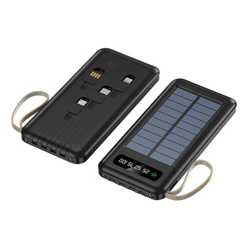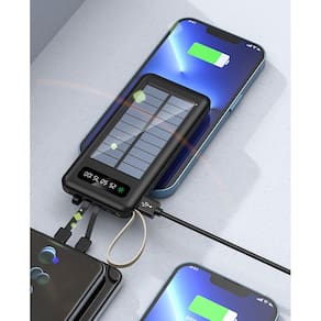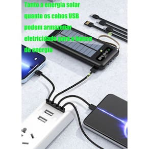 O Power Bank Solar de 20000mAh é o seu companheiro ideal para manter seus dispositivos carregados em qualquer lugar. Este power bank inovador vem com quatro portas de carregamento e uma série de características incríveis para atender às suas necessidades de energia.