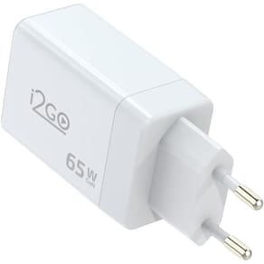 Carregador de parede ultra rápido com tecnologia GaN, 3 portas (2x USB-C, 1x USB-A), potência total de 65W. Possui sistema Multi Protect contra sobretensão, sobrecorrente e superaquecimento. Carrega 3 dispositivos simultaneamente com distribuição inteligente de energia.Tipo