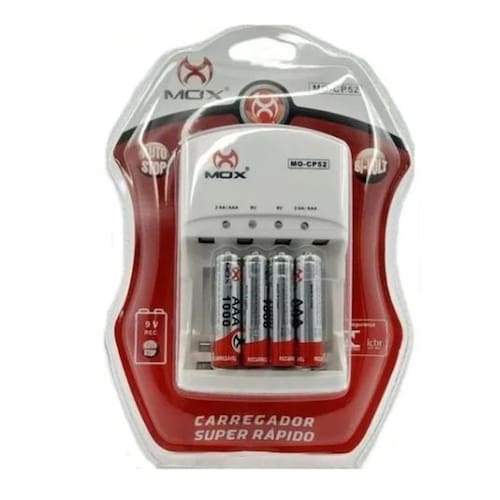 Carregador MOX MO-CP52 Com 4 Pilhas AAA