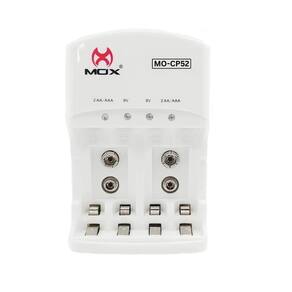 Carrega 4 pilhas AA, 4 AAA ou 2 baterias 9V entre 6 e 8 horas