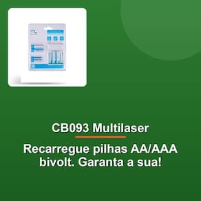 A embalagem inclui o carregador, quatro pilhas AA, quatro pilhas AAA e um guia rápido para facilitar o uso. Invista na praticidade e economia do Carregador CB093 da Multilaser e deixe de lado o incômodo de comprar pilhas constantemente!