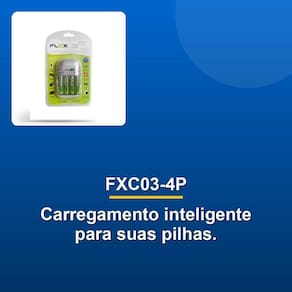 Para garantir sua experiência completa, o FXC03-4P acompanha 4 pilhas recarregáveis AA de 2900mAh, permitindo que você comece a utilizar o carregador imediatamente. Invista na praticidade, segurança e qualidade da Flex/X-Cell, e carregue suas baterias com o FXC03-4P.