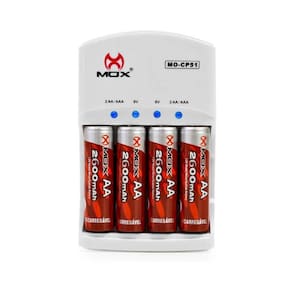 DESCRIÇÃO: Carregador De Pilhas RECARREGÁVEIS Mox CP51 - Para 4 Pilhas Nimh Aa Ou Aaa Ou 2 Baterias 9V RECARREGÁVEIS. - Auto Stop,Desliga Com A Carga Completa Para Pilhas E Baterias. - 4 Leds Na Cor Azul Indicando O Processo De Carga. - 4 Canais De Carga Independentes. - Bi-Volt AUTOMÁTICO - Plug Articulado. - Entrada: Ac 100 240V - 50/60HZ, 50MA 5W MÁX - SAÍDA: Dc 2,4V - 400 Ma Aa/Aaa - Aa 200MA Aa 200MA 4 - Aaa 200MA 2 Aaa 200MA 4 - 9V Dc 20MA Ean: 7898563935685