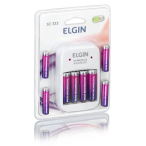 Marca: Elgin. Modelo: SC333. Bivolt: Seleção automática de tensão. Tempo de carga: 12 a 14 horas dependendo da capacidade da pilha. Carrega 1 ou 2 baterias recarregáveis de 9V. Carregamento indepedente de 2 a 2 ou 4 pilhas AA ou AAA. Aprovado pelo inmetro: testado por laboratórios credenciados pelo inmetro, para garantir sua qualidade e seu funcionamento, de acordo com a portaria 371. Dimensões: 105 x 65 x 30 mm. Itens Inclusos: Carregador para pilhas e baterias Elgin SC333. 4 pilhas AA. 4 pilhas AAA. Marca: Não Informado Ean: 7897013518096