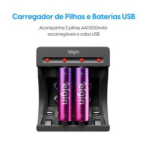 O carregador Elgin SCUSB é a solução ideal para manter suas pilhas e baterias sempre prontas para uso. Com sua versatilidade, ele é capaz de carregar até 4 pilhas recarregáveis AA ou AAA, ou até 2 baterias 9V, tudo isso de forma simultânea.