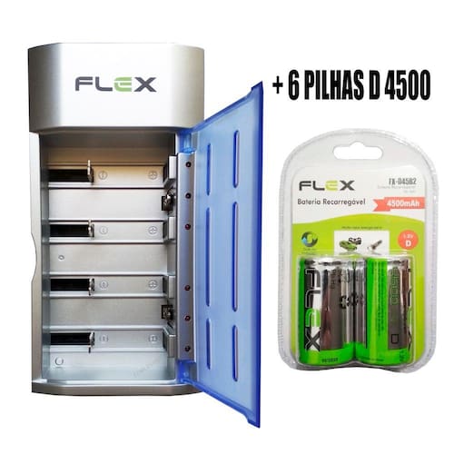 + 6 Pilhas Recarregáveis Tipo D Grande 4500mah Flex FX-D45B2