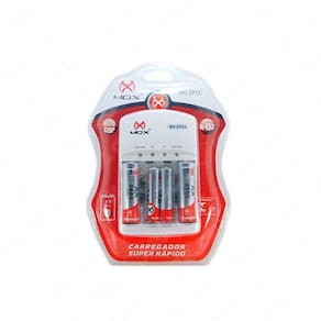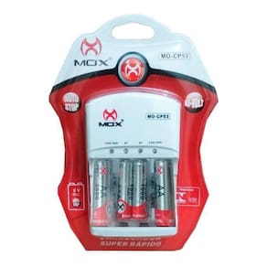 Carregador De Pilhas Rápido Mox 4 Pilhas Carregador de pilhas rápido MOX Bivolt, com carregamento super-rápido de até 4 pilhas AA. É bivolt automático e possui 4 canais de cargas independentes. Com função Auto Stop que desliga a energia automaticamente quando a carga estiver completa, evitando diminuir a vida útil de sua pilha. Este carregador contém luzes de led indicando o processo de carregamento das pilhas.