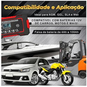 carregador é projetado para carros e caminhonetes, oferecendo uma solução versátil e prática para o cuidado da bateria do seu veículo.