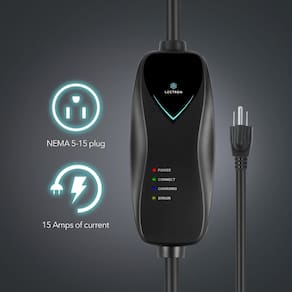 Lectron Carregador EV Nível 1 - Certificado ETL, 110 V, 15 Amp, cabo de extensão de 4,9 m e cabo J1772 - Carregador elétrico portátil para carro J1772 EVs com plugue NEMA 5-15 - Carregamento de nível 1 – O carregador Lectron nível 1 permite que você carregue rapidamente seu EV com uma saída padrão de 110 V; você recebe 15 amperes e 1,65 kW de potência pelo tempo de carga total padrão para o seu carro, em casa ou no trabalho - Carregamento noturno conveniente – O carregador EV Lectron de 15 Amp é uma opção de carregamento mais acessível e mais rápida em comparação com outros carregadores EV de nível 2, proporcionando uma carga extra de 40 a 80 km em casa — sem gastar muito - Compatibilidade com J1772 – Este carregador J1772 é compatível com todos os veículos elétricos que usam o padrão J1772, incluindo BMW, Ford, Honda, Hyundai, Kia, Porsche, Nissan e Chevy - Segura e confiável - certificação FCC e ETL (padrão UL2594) para segurança com proteção contra sobretensão, sobrecorrente e curto-circuito; certificação Energy Star para eficiência; classificação IP65 para resistência à poeira e à água - Conveniência portátil – Se você estiver em uma viagem ou visitando um amigo, você pode facilmente conectar seu EV e carregar com nosso carregador portátil EV