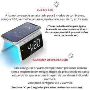 Base de Carregamento Sem Fio com Relógio Digital, Despertador e Luminária RGB com , Samsung, AirPods e iWatch