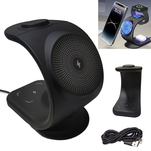Diga adeus aos emaranhados de cabos e à busca incessante por tomadas! O Carregador por Indução 3 em 1 - WIRELESS possui um design revolucionário e funcionalidades de ponta, este carregador vai simplificar sua vida digital como nunca antes.