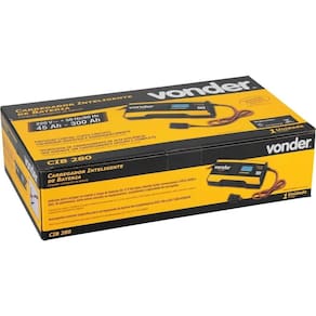 Aplicação: Indicado para carregar ou manter a carga de baterias de 12 V dos tipos chumbo ácida convencional e VRLA (AGM e Gel), de automóveis, entre outros veículos ou equipamentos, respeitando a capacidade do carregador. Além das garras para baterias convencionais, acompanha conector específico para carregamento da bateria das Empilhadeiras ESV 150 e ESV 1500 VONDER.
