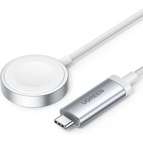 Carregador magnético sem fio certificado MFM integrado. Suporta carregamento rápido para modelos mais recentes de Watch (Series 7 e posteriores). Possui proteção contra sobrecorrente, sobretensão, curtos-circuitos e supertemperatura. Cabo com 1,5m de comprimento em material trançado.Tipo