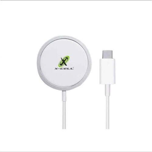 Carregador magnético sem fio com tecnologia MagSafe, carregamento por indução, entrada USB-C e anel metálico incluso. Potência de 15W.Tipo