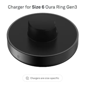 Oura Carregador Ring Gen3 - Tamanho 6 - Carga total da bateria em 60 a 80 minutos - Base de carregamento e cabo USB-C