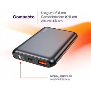 Carregamento rápido com Power Delivery 20W e Quick Charge 18W. Até 50% de carga em 30 minutos. Display LED indica porcentagem de carga e carregamento rápido. Função Pass Through permite carregar o power bank enquanto carrega um dispositivo. Bateria de polímero de lítio Grau A+ com proteções contra sobrecarga, curto-circuito, sobretensão e superaquecimento.Tipo