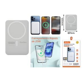 A potência de saída de até 20W permite carregamento rápido e eficaz, reduzindo o tempo necessário para manter seu smartphone funcional. Compatível com aparelhos Android e iOS, o dispositivo é versátil e se adapta facilmente às necessidades de diferentes usuários, sendo uma ótima opção para quem busca um power bank universal, com suporte tanto a conexão direta quanto ao carregamento magnético sem fio.