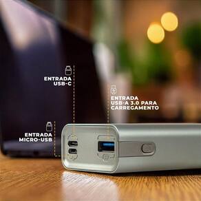 Pensado para facilitar a sua rotina, o Powerstation conta com entradas Micro USB e Tipo-C, além de saídas USB-A e Tipo-C, permitindo o carregamento de diferentes dispositivos simultaneamente. Ele oferece suporte a múltiplas tensões e correntes, como 5V, 9V, 12V, 15V e até 20V com 2.25A, adaptando-se de forma inteligente às necessidades do seu aparelho. A tela digital integrada exibe claramente o nível da bateria e pisca durante o carregamento, desligando automaticamente quando o processo é concluído, o que ajuda a preservar a vida útil do equipamento.