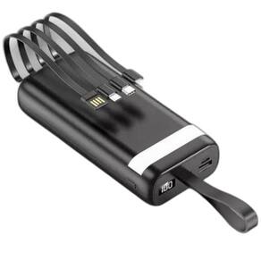 Powerbank 20.000 mAh com cabos embutidos (Lightning, Type-C, Micro USB), 1 Saída USB, Visor digital, Carga Turbo.Tipo