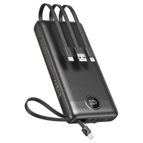 Itens inclusos 1 power bank 10000mah 4 em 1 com cabos acoplados preto