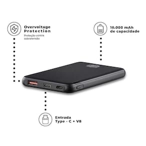 O carregador Portátil Powerfast da Gorila Shield possui 10000mAh e tecnologia contra variação de voltagem. Com ele você pode carregar o seu celular onde e quando quiser, dá para fazer até 2 recargas dependendo do modelo do seu aparelho. Vale lembrar que o carregador possui três entradas: 1 USB padrão, uma type c e outra Micro USB V8. Para tornar o acessório ainda mais seguro, ele ainda vem com proteção contra variações de voltagem. Se como isso não bastasse, o Powerfast vem acompanhado do Cabo Slim 3 em 1. Este cabo possui 3 modelos de entradas: 1 lightning, 1 type-c e outra Micro USB V8, tornando o carregador portátil compatível com qualquer outro celular.Marca: GshieldCapacidade: 10.000mah Tamanho: 12,5cmPeso: 176 gramasMicro Input: 5V - 2.4 AUSB Output: 5V - 2.4 AType-c Input: 5V - 2A