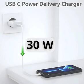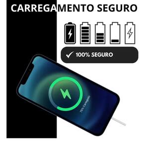 Carregador inteligente com tecnologia de carregamento ultrarrápido, design compacto, inclui cabo USB-C premium que não enrola nem quebra facilmente. Certificação de qualidade e segurança.Tipo