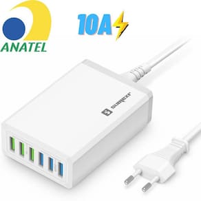 - Carregador de parede multi portas, de bolso é leve e compacto, designado para carregar vários dispositivos USB ao mesmo tempo. - Para um melhor uso só utilize cabos certificados. - Ampla Voltagem AC 100-240V compátivel em todo o mundo. É ótimo para viajar com vários dispositivos. - Testado e aprovado. - O Design compacto permite que você mantenha seus dispositivos e cabos organizados durante o carregamento. - Se precisar de porta extra para conectar dispositivos USB adicionais , ele suporta também: Scaners , Impressoras, camera digital , gravadores, microfones, teclados, MP3 Players e muito mais. - Ampla Compatibilidade : Com 10A ele carrega todos os tipos de telefones , tablets e outros dispositivos sumultaneamente. - Um Carregador extremamente Rápido que estabiliza a energia utilizando tecnologia de ponta.