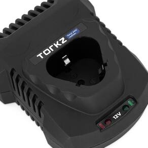 Indicado para ser utilizado em toda a linha de baterias de Li-íon com tensão nominal de 12 Volts da marca Torkz, conta com um carregamento completo de aproximadamente 60 minutos. Super leve, compacto e de alta potência, é ótimo para ser levado em todos os locais em que você irá usar a sua ferramenta. Produzido com plástico, é ainda mais leve e não ocupa muito espaço em sua caixa de ferramentas ou bolsa.