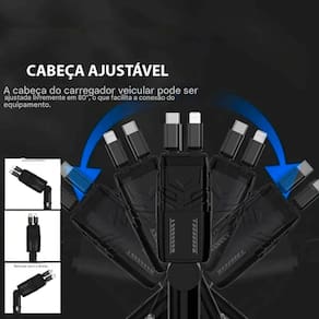 Chega de carregar vários cabos soltos no carro. Tudo fica integrado, organizado e sempre à mão.