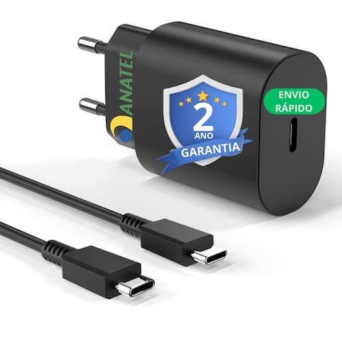 Carregamento rápido turbo, porta tipo C, cabo de 1 metro, bivolt.Acabamento do material