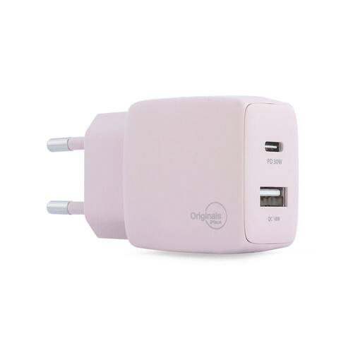 Carregador USB-C/USB com 2 portas, potência total de 30W. Suporta tecnologias Power Delivery e Quick Charge para carregamento rápido e seguro. Entrada bivolt (100-240V). Inclui manual e garantia de 24 meses.Tipo
