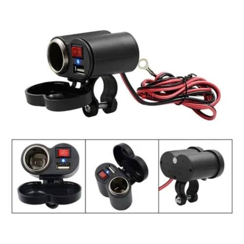 Carregador e isqueiro USB de 12 v\\\ para carros e motocicletas\\ Ideal para instalação em motocicletas com 2,2 cm de diâmetro de guidão.\\\ Material de PVC, durável, impermeável e à prova de poeira.\ nCabo de alimentação de 130 cm.\ NFácil instalação diretamente na bateria da motocicleta por meio de cabos positivos e negativos.\ nResistente a altas e baixas temperaturas.\ nBotão liga/desliga da porta USB\ nConector mais leve\ nCarregador USB e isqueiro para carro e motocicleta\ n12 v\ n\ nIdeal para ser instalado em motocicletas com um diâmetro de guidão de 2,2 cm. Material de PVC, resistente, impermeável e à prova de poeira. Cabo de alimentação de 130 cm. Fácil instalação direta na bateria da motocicleta por meio de cabos positivos e negativos. Resistente a altas e baixas temperaturas. Botão de ligar/desligar da porta USB e conector aceso