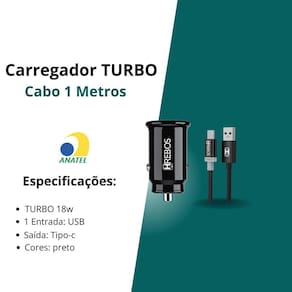 Carregador veicular 18w para moto g04 g14 g24 g34 g54 g84 Carregador turbo hrebos 18w tipo-c - preto Carregue seus dispositivos com rapidez, segurança e eficiência com o carregador turbo hrebos 18w tipo-c. Com tecnologia de carregamento rápido, ele entrega potência de até 18w, ideal para smartphones, tablets e outros dispositivos compatíveis. Seu design compacto e elegante na cor preta combina perfeitamente com qualquer ambiente ou estilo. Características: