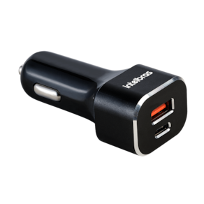 O ECV 11 Power 38W é um carregador USB rápido e versátil, com 2 saídas, sendo uma delas no formato USB-C e a outra em USB-A, oferecendo flexibilidade para atender os mais diferentes tipos de dispositivos, dos mais novos aos mais antigos, como smartphones, tablets, sistemas de navegação GPS, câmeras automotivas de painel, entre outros.. Com saída USB-C Power Delivery (USB-C PD) com potência máxima de 20 W, ele carrega seu aparelho até três vezes mais rápido* que um carregador convencional.