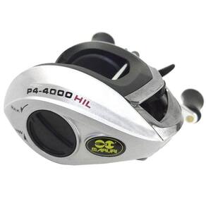 Carretilha P4, com recolhimento de e sistema de 4 rolamentos com corpo e carretel de grafite.