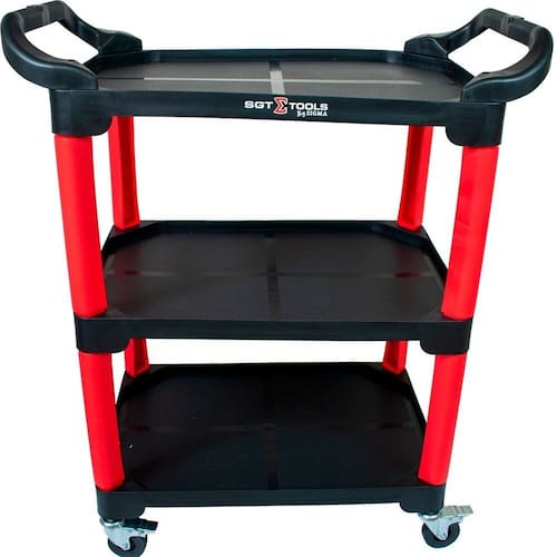 O carrinho 3 bandejas da SigmaTools é robusto e versátil, suporta até 100 kg e gira 360 graus. Ideal para organização e mobilidade, com estrutura resistente e espaço amplo para ferramentas e equipamentos Garantia de 03 meses/Organizadores de ferramentas Possui Portas: Não Acabamento: Plástico Altura: 25 cm Ambiente Principal: Comércio Composição: Plástico Comprimento: 68 cm Itens Inclusos: Não se aplica Largura: 46 cm Manual de Montagem e Instalação: https://product-hub-prd.madeiramadeira.com.br/957873/documents/e0390bc2-6bd9-4c45-a8d3-d207eaa1608b2436617173017284833928516.pdf Material Principal: Plástico Origem do Produto: Importado Peso: 8,11 kg Possui Bandejas: 02 Possui Fechadura com Chave: Não Possui Gavetas: Não Possui Pés: Não Possui Rodas: 04 Recomendações de Uso, Manutenção e Limpeza: manter os rodízios sempre limpos. Suporta Até (kg): 100 kg