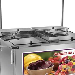 Já pensou na possibilidade de vender Salada de Frutas e Açaí com o mesmo Carrinho Ambulante? Com o Carrinho Ambulante 2 em 1 é possível fazer a venda de dois doces tropicais sem precisar efetuar a compra de dois produtos! O Carrinho 2 em 1 é ideal para quem quer começar seu próprio negócio ou ter uma renda extra. O Carrinho Ambulante de Salada de Frutas e Açaí Luxo une beleza e belo acabamento, trazendo a você uma incrível qualidade, sendo conhecido como um dos melhores Carrinhos do mercado.