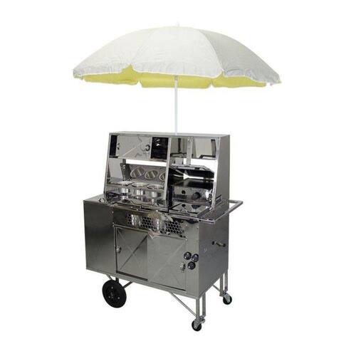 Esse Carrinho conta com Caixa Térmica para bebidas com capacidade de aproximadamente 70 latas, guarda-volumes, molheiras quente, frias e chapa de lanche estando pronto para o uso!