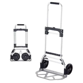 Com rodas de borracha de 7” e design dobrável economizando espaço ao ser armazenado.