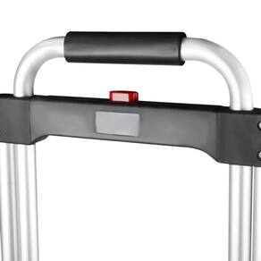 Especificações Técnicas: - Capacidade: 100 kg - Dimensões totais: 450 mm comprimento x 490 mm largura x 1080 mm altura - Plataforma: 280 mm comprimento x 485 mm largura - Peso: 4,1 kg - Rodas: 7 em EVA