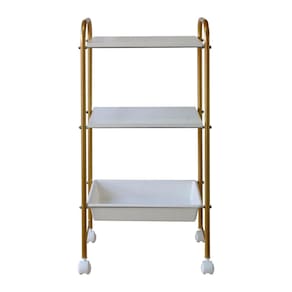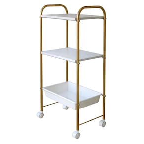 Carrinho Auxiliar Estetica 2 Tampos E 1 Bandeja Dourado