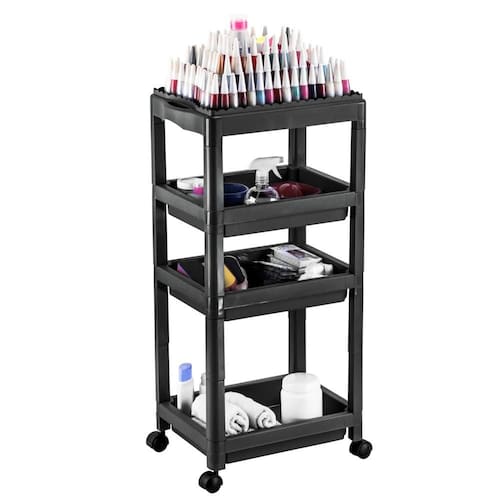O Carrinho Auxiliar Manicure Dompel é ideal para profissionais manicures e pedicures. Organizador com capacidade para 120 esmaltes no tampo superior, possui 3 bandejas auxiliares.