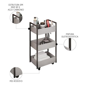 O design estilo industrial adiciona um toque de modernidade, ao passo que as rodinhas potencializam a funcionalidade, já que fica mais prático a movimentação dos itens. Seja como carrinho auxiliar para estética ou salão de beleza, seja como organizador de banheiro ou até mesmo como multiuso para lavanderia. Não importa a finalidade, já que esse carrinho organizador com 3 caixas pode servir para todas essas opções e quantas mais você desejar, afinal, versatilidade é o atributo que melhor define essa peça.