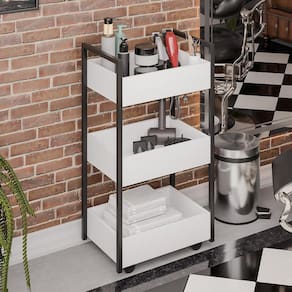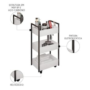 O design estilo industrial adiciona um toque de modernidade, ao passo que as rodinhas potencializam a funcionalidade, já que fica mais prático a movimentação dos itens. Seja como carrinho auxiliar para estética ou salão de beleza, seja como organizador de banheiro ou até mesmo como multiuso para lavanderia. Não importa a finalidade, já que esse carrinho organizador com 3 caixas pode servir para todas essas opções e quantas mais você desejar, afinal, versatilidade é o atributo que melhor define essa peça.
