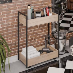 O design estilo industrial adiciona um toque de modernidade, ao passo que as rodinhas potencializam a funcionalidade, já que fica mais prático a movimentação dos itens. Seja como carrinho auxiliar para estética ou salão de beleza, seja como organizador de banheiro ou até mesmo como multiuso para lavanderia. Não importa a finalidade, já que esse carrinho organizador 2 caixas pode servir para todas essas opções e quantas mais você desejar, afinal, versatilidade é o atributo que melhor define essa peça.