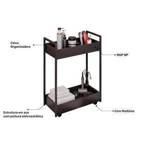 Carrinho Auxiliar Para Salão De Beleza Lara 70cm Em Aço Com Rodízios Preto - Abmaza