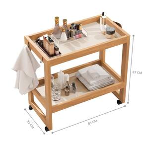 Possui 2 prateleira e 4 rodízios facilitando o manuseio do produto.