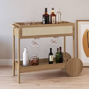 Com design escandinavo e toque minimalista expresso nas linhas retas e tonalidades neutras, esse carrinho bar com gaveta é sinônimo de funcionalidade, já que podemos aproveita-lo como um aparador de madeira na sala de jantar, sala de estar ou até mesmo no corredor; aliás, que tal criar um cantinho do café moderno e cheio de personalidade?! Opções não faltarão. Basta usar a criatividade e dispor bebidas, taças, xícaras e até mesmo algum item decorativo.