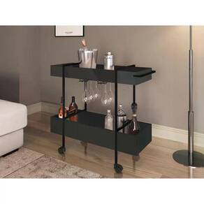 Carrinho Bar, Linha Complementos Artesano, também chamado de carrinho de bebidas, possui estilo industrial e design minimalista, é versátil com combinação entre vários módulos. Possui estrutura em tubos de Aço e acabamento com pintura anticorrosiva na cor Preto Fosco. Madeira ecologicamente correta em MDP, com acabamento em pintura BP Fosco. Composto por 02 compartimentos resistentes que suportam 11 kg cada, puxador, suporte metálico para taças, você poderá acomodar seus itens decorativos, suas bebidas favoritas, copos, taças e outros acessórios para preparar os drinks de maior sucesso entre seus amigos e família, além de deixá-los sempre organizados para os momentos de descontração, acompanha rodízios que facilitam o da peça, permitindo que você o leve até para áreas externas ou onde mais quiser, garante um visual sofisticado e moderno para seu ambiente. Mais produtos da Linha Artesano, você encontra em nosso site, podendo fazer a composição completa para sua casa, são diversos itens com design prático e funcional para tornar a vida mais fácil e a casa mais alegre. Este móvel chegará em sua casa separado em 01 volume.